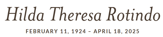 Hilda Theresa Rotindo, age 101, of Croton On Hudson, New York passed away on Friday, April 18, 2025. A funeral service for Hilda will be held Wednesday, April 23, 2025 from 10:00 AM to 10:30 AM at Edward F. Carter Funeral Home, 41 Grand St, Croton-On-Hudson, New York 10520. A funeral service will occur from 10:00 AM to 10:45 AM, 41 Grand Street, Croton-On-Hudson, NY 10520. A committal will occur Wednesday, April 23, 2025 from 11:00 AM to 11:15 AM at St Augustine Cemetery, Hawkes Ave, Ossining, NY 10562. Hilda Rotindo Obituary - Montrose, NY
